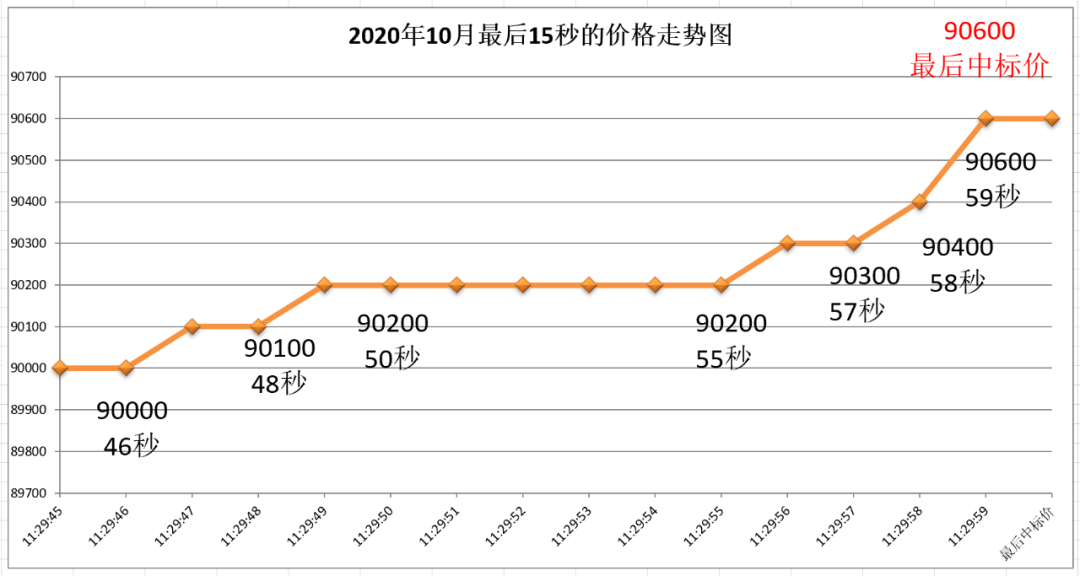 2020年10月上海车牌拍牌的最后一分钟最低价走势如下
