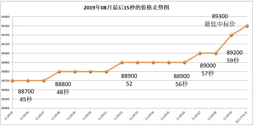 2019年08月上海车牌拍牌的最后一分钟最低价走势如下