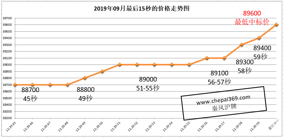 2019年09月上海车牌拍牌的最后一分钟最低价走势如下