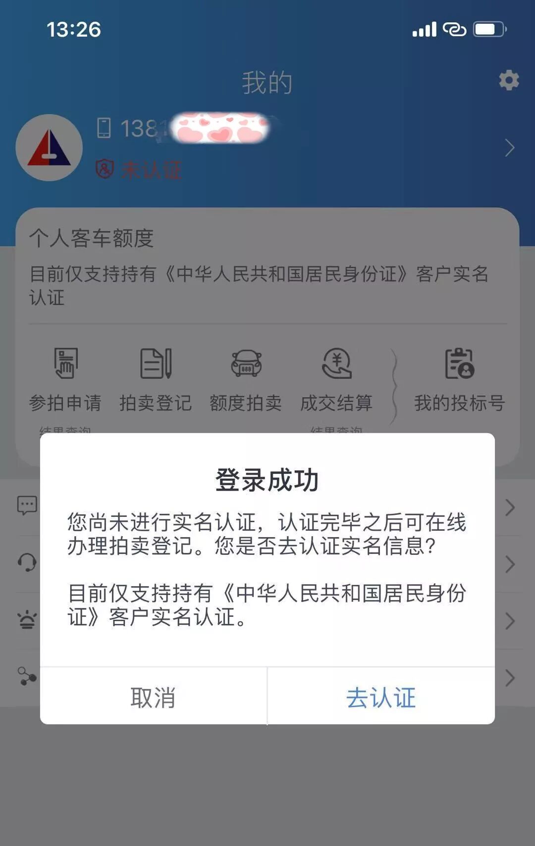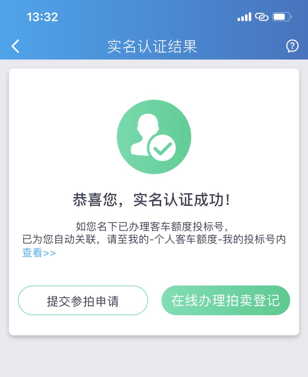 实名认证成功后,就可以申请参与拍牌了