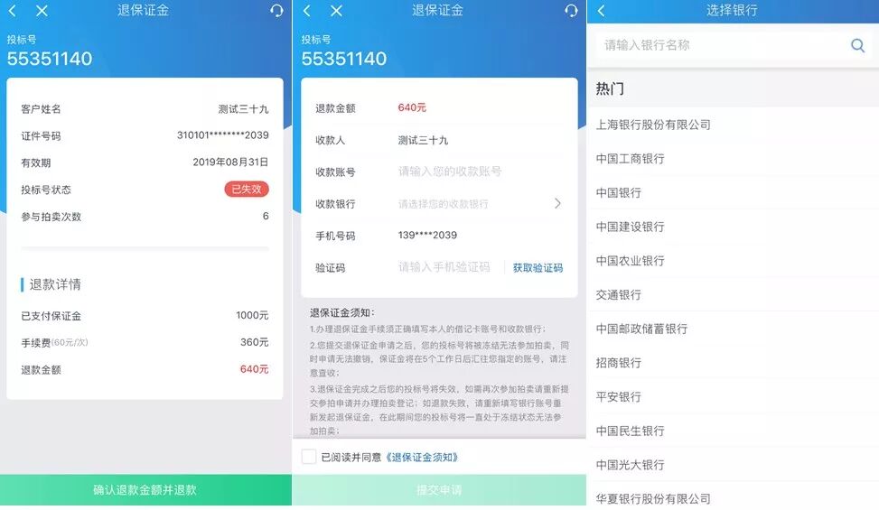 《拍卖密码封条》失效的客户亦可在APP里办理退保证金手续。