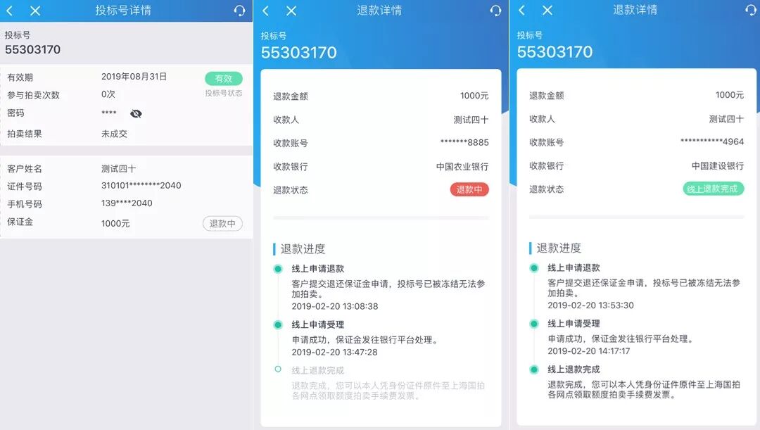 查看投标号详情,即可查看退款进度。