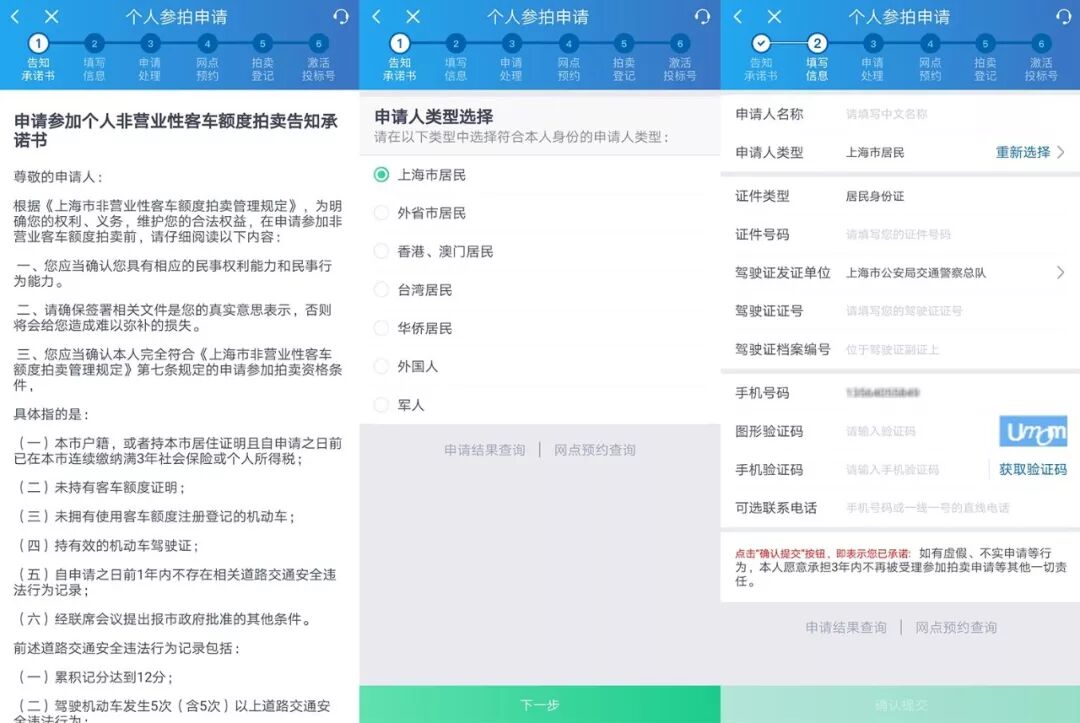 阅读并录入个人信息,确认后提交。