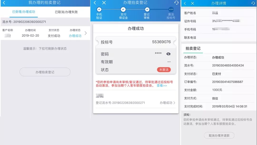 3、参拍申请尚未审核通过,投标号的状态为未激活,当审核通过后,投标号自动激活,方可参加当期个人客车额度拍卖会。