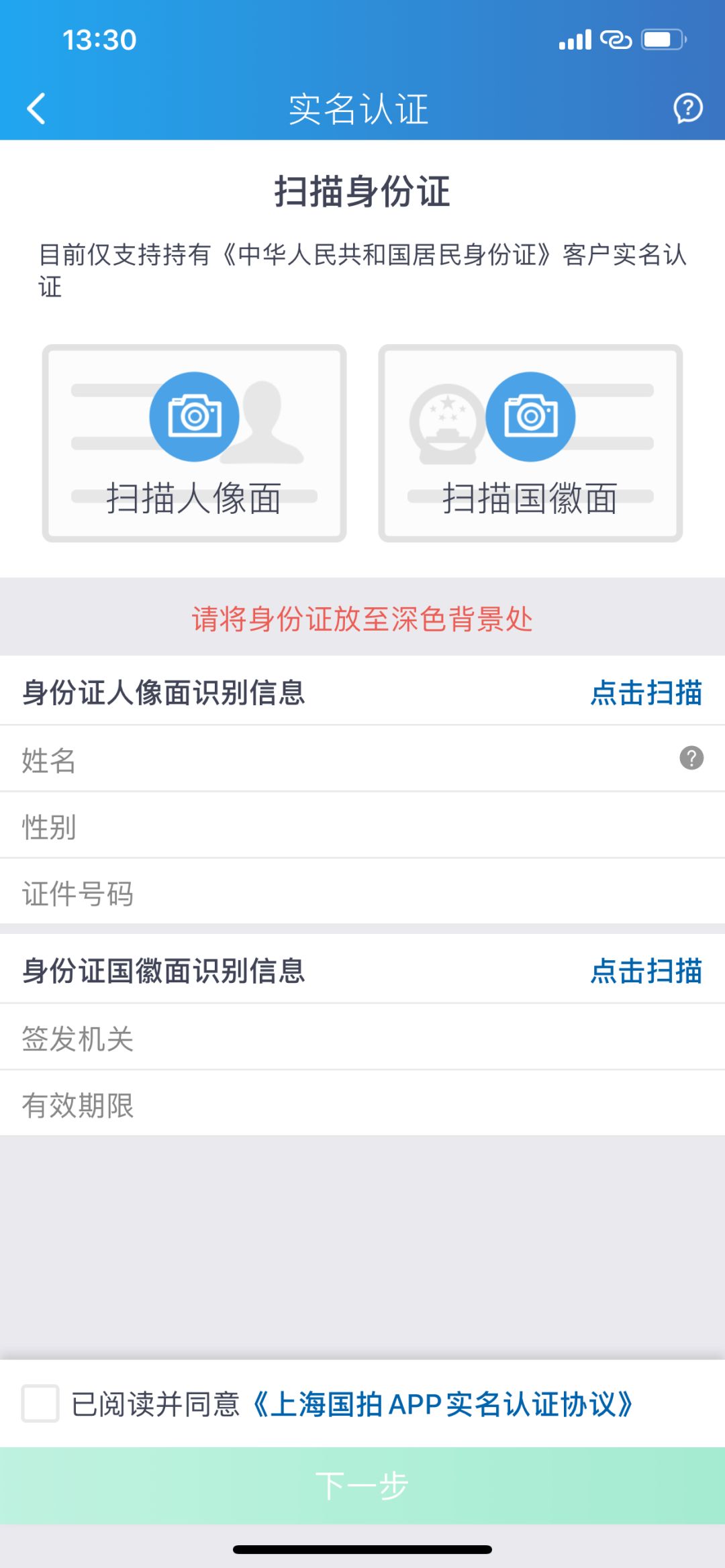 首次注册后,需要进行实名认证。
