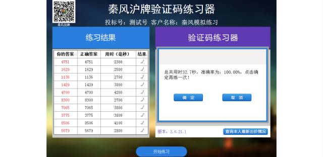 练习的时候,和拍牌一样,同样只需要输入验证码按回车即可。