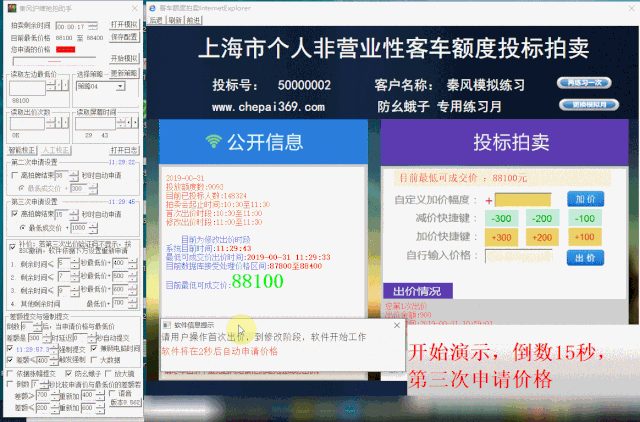| 警示价 | 警示价89300 第一次出价不能高于警示价 并且一定要在11点前完成,不然视作放弃本次拍牌 |