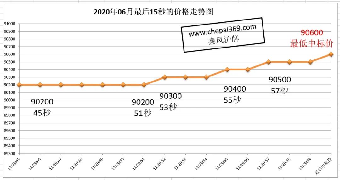 2020年06 月上海车牌拍牌的最后一分钟最低价走势如下