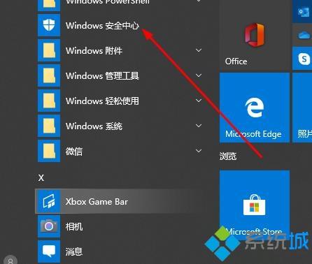 1、点击“设置”选择“Windows安全中心”。