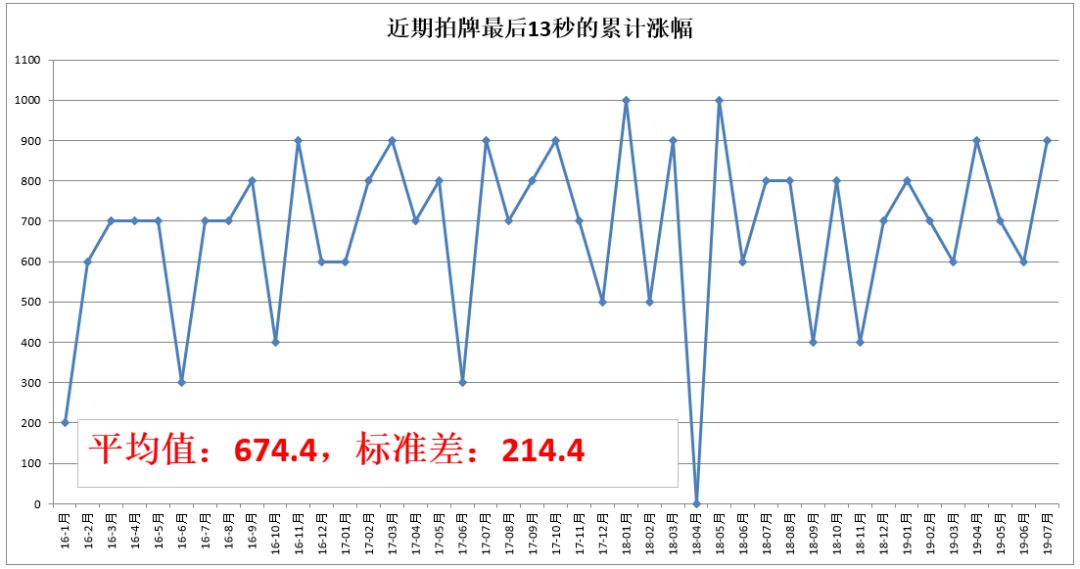 依据我们一些经验,离拍牌结束时间越远,价格涨幅的波动也就越大。