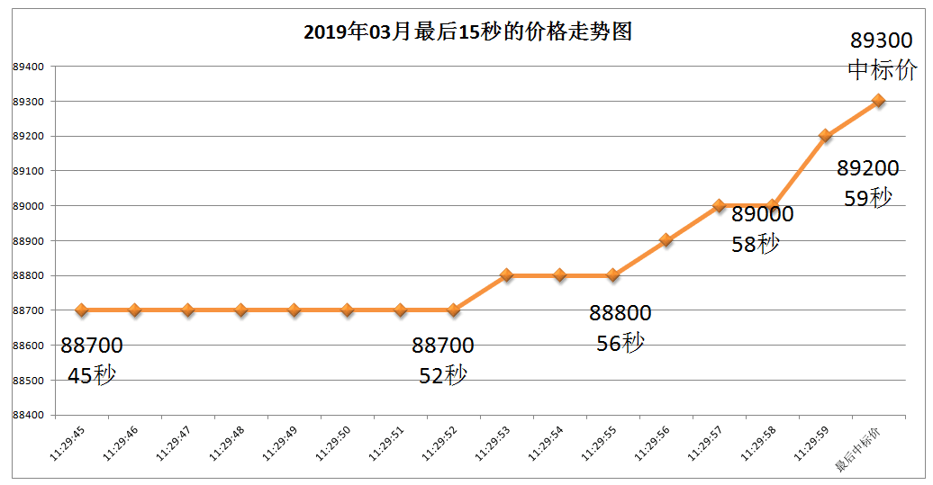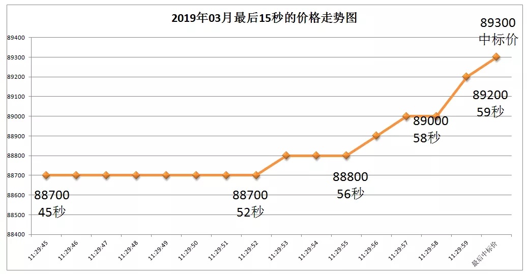 2019年03月上海车牌拍牌的最后一分钟最低价走势如下